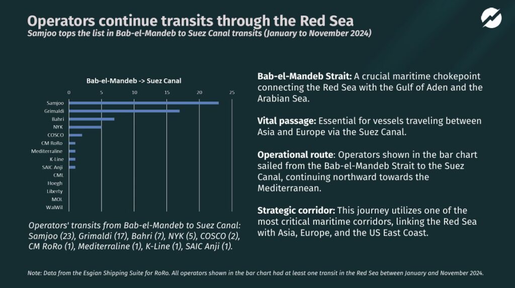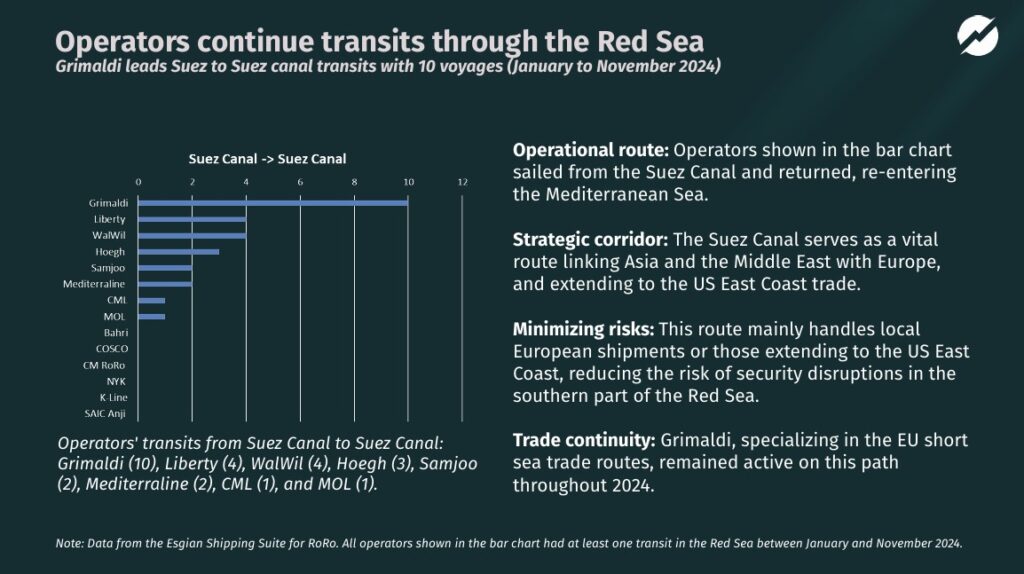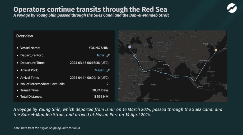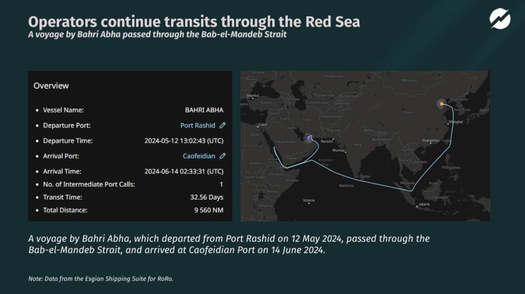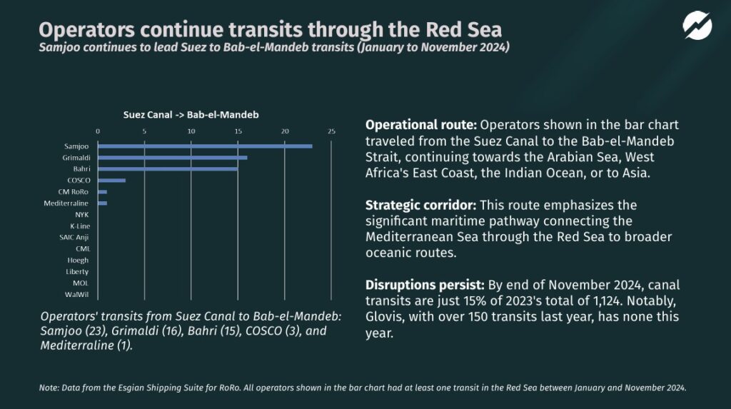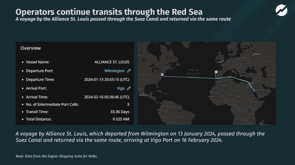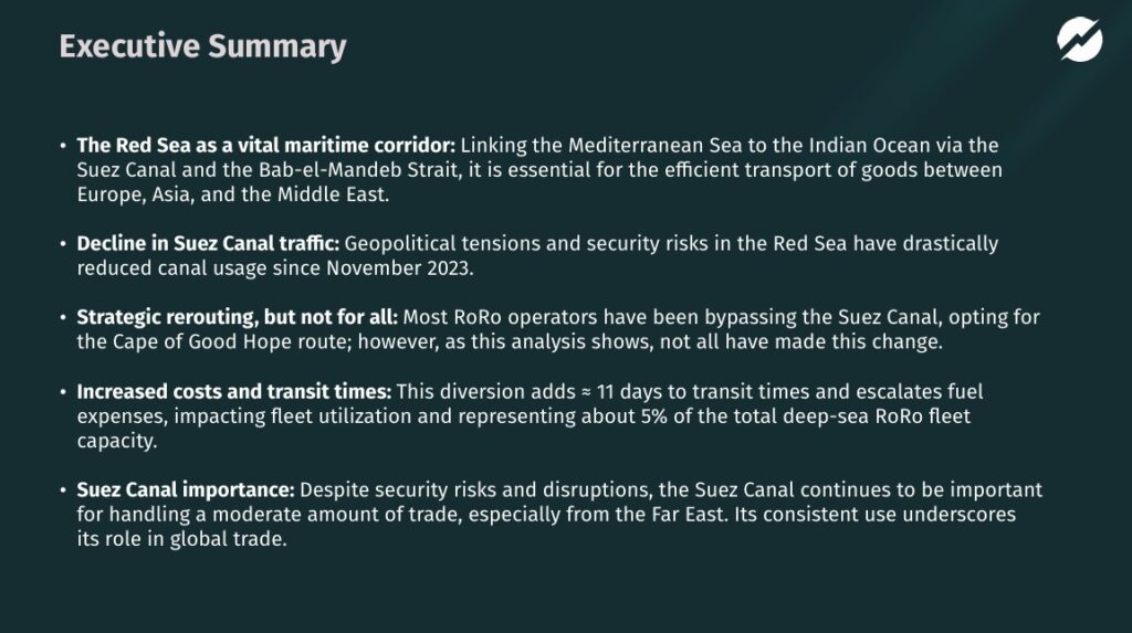- Strategic rerouting, but not for all: Most RoRo operators have been bypassing the Suez Canal, opting for the Cape of Good Hope route; however, as this analysis shows, not all have made this change.