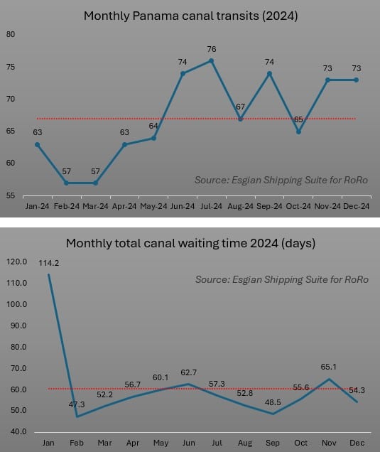 Despite operational challenges in early 2024, caused by the worst drought in the canal’s history, the Panama Canal has demonstrated remarkable resilience. In 2024, the canal recorded 806 RoRo vessel transits, marking a 4.3% increase from the previous year, which saw 773 transits.