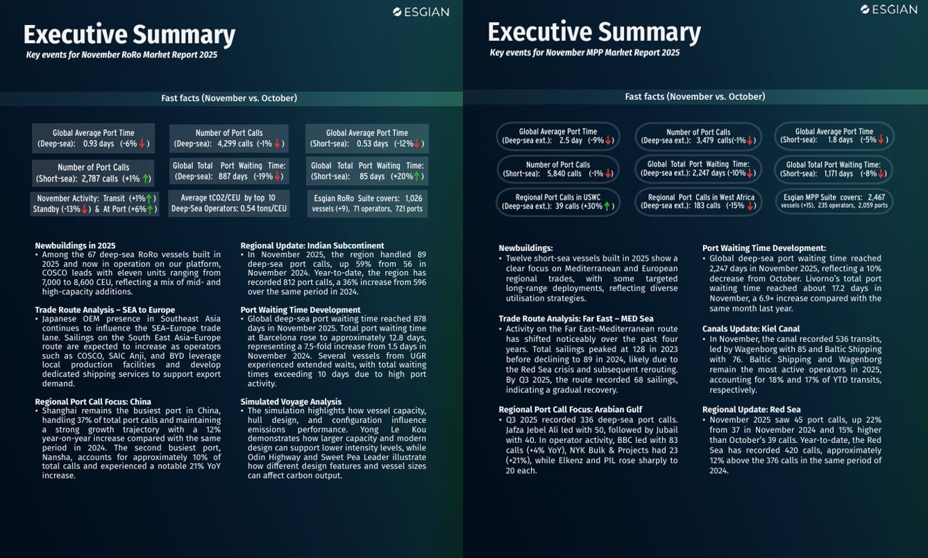 Esgian Shipping RoRo and MPP Market Reports for November 2025