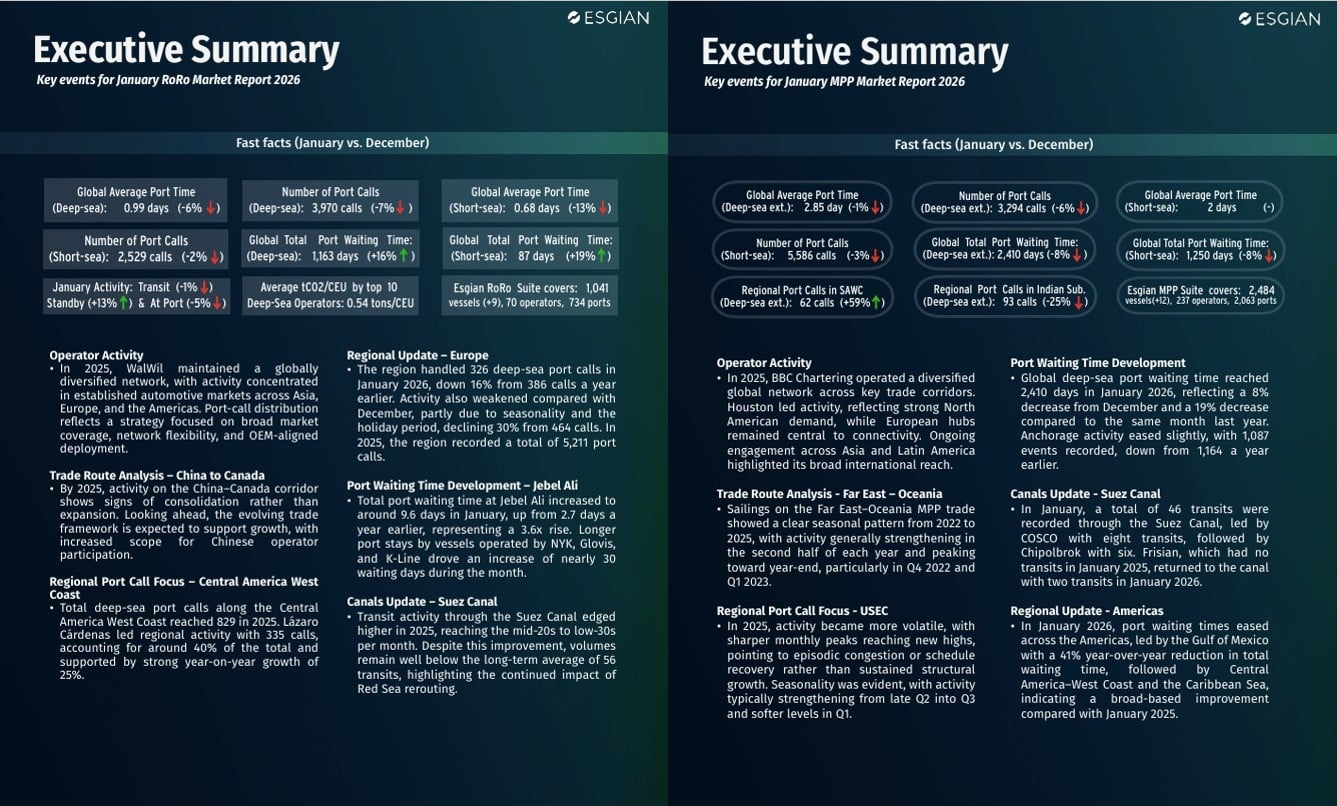 Esgian Shipping RoRo and MPP Market Reports for January 2026