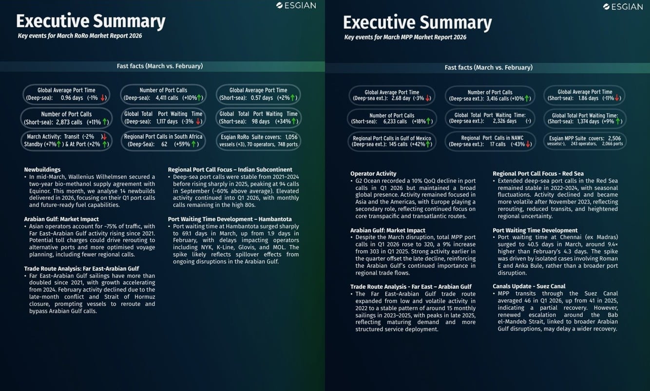 Esgian Shipping RoRo and MPP Market Reports for March 2026