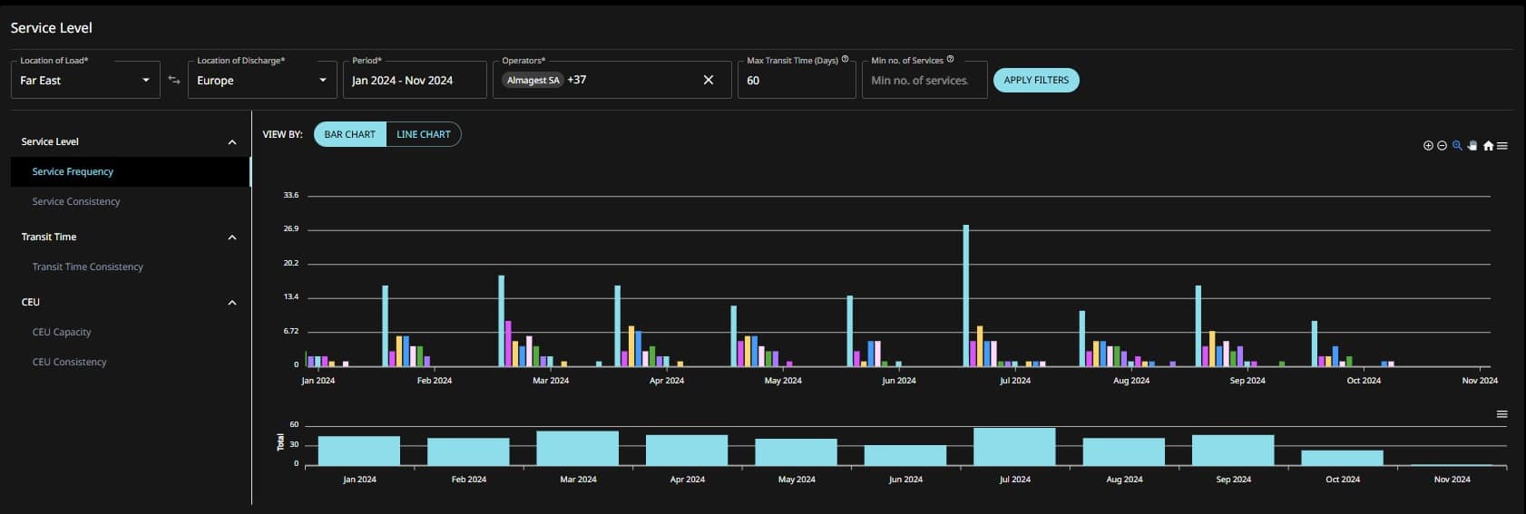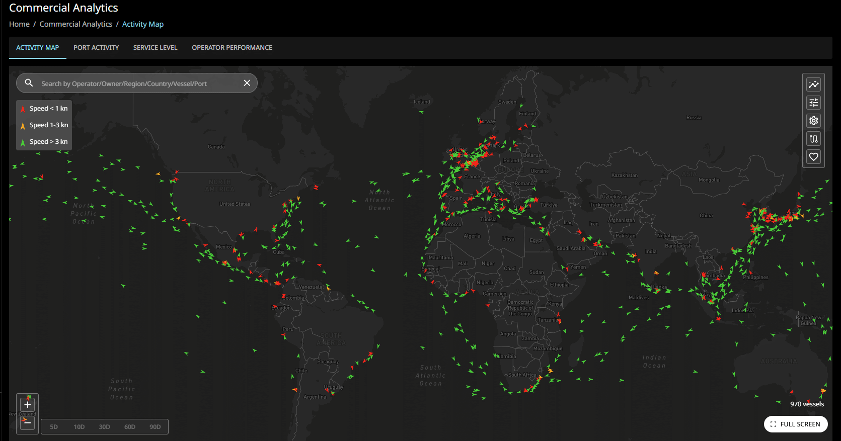 Analyze global activity in the global RoRo and MPP fleet through activity map and intuitive analysis tools. Compare operators performance in a range of parameters vs segment average and turn data into actionable insight.