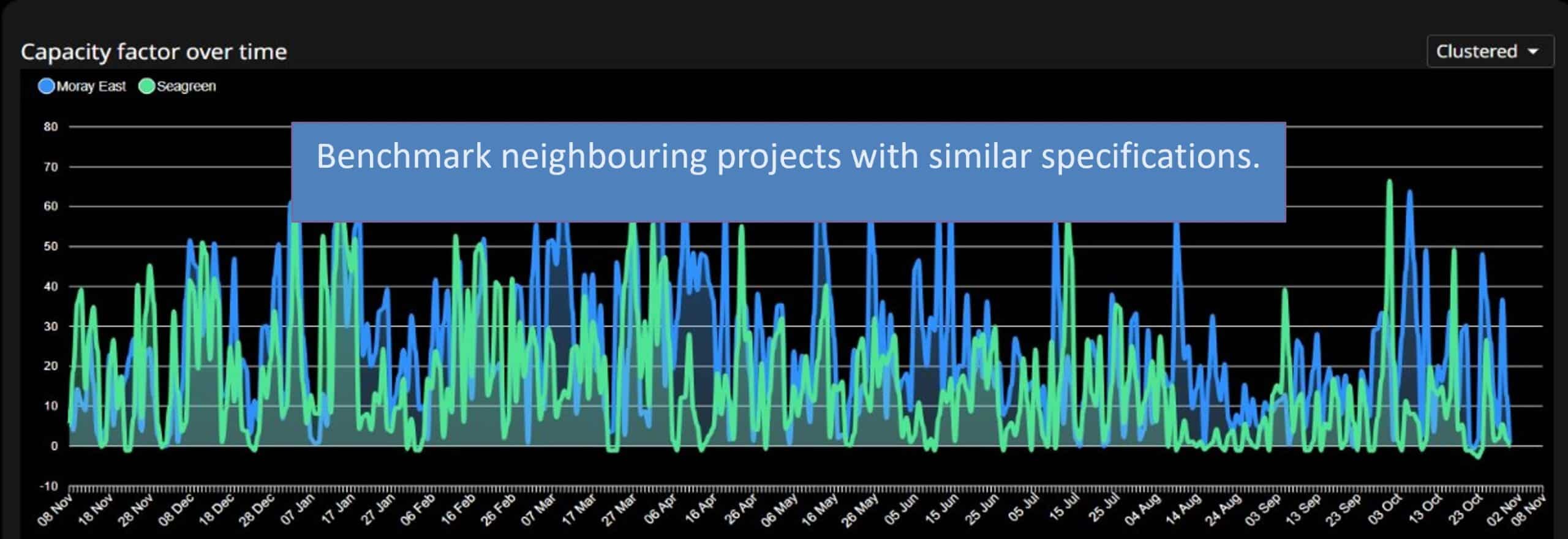 Benchmark performance against, projects, operators, sea regions, turbine models, and much more
